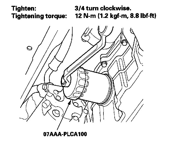 5. After the rubber seal seats, tighten the oil filter clockwise with the oil filter wrench.