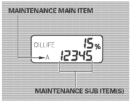 If the remaining engine oil life is 15 to 6 percent, you will see the engine oil life indicator every time you turn the ignition switch to the ON (II) position. The maintenance minder indicator will also come on, and the maintenance item code(s) for other scheduled maintenance items needing service will be displayed below the "OIL LIFE" message.