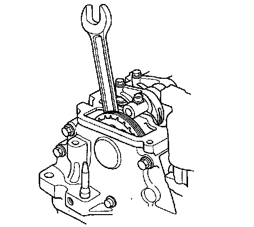 1. Hold the camshaft with a 27 mm open-end wrench.