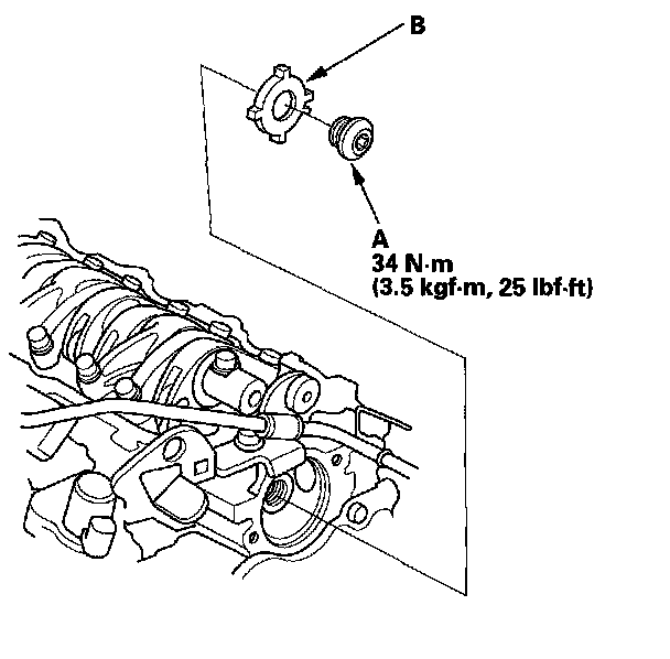 2. Apply new engine oil to the threads of the CMP pulse plate mounting bolt (A), then install the CMP pulse plate (B).