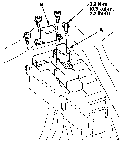 4. Remove the under-hood fuse/relay box lower cover (A) from the fuse/relay box.