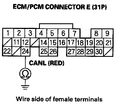 26. Check for continuity between ECM/PCM connector terminal E24 and body ground.
