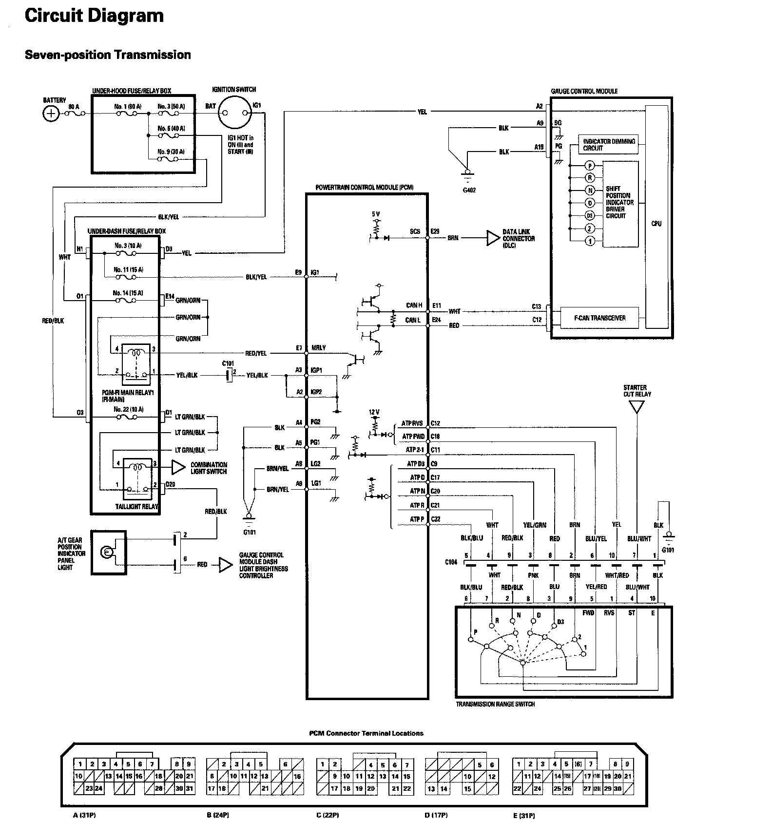 A/T Gear Position Indicator Circuit Diagram - Seven-position Transmission: