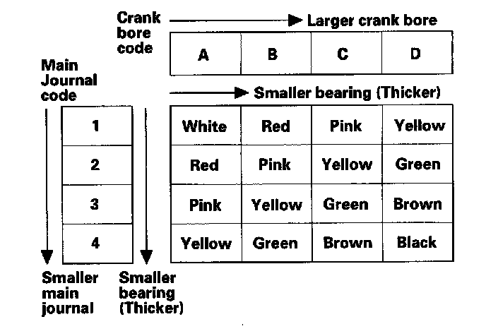 Main bearing size codes