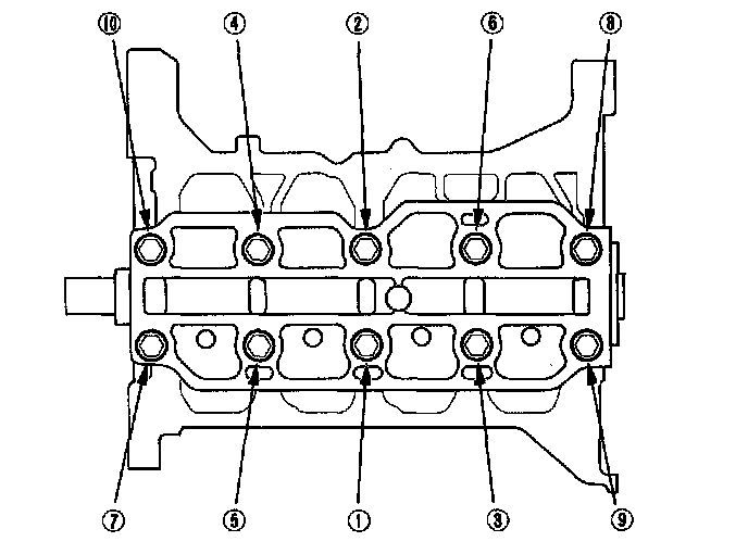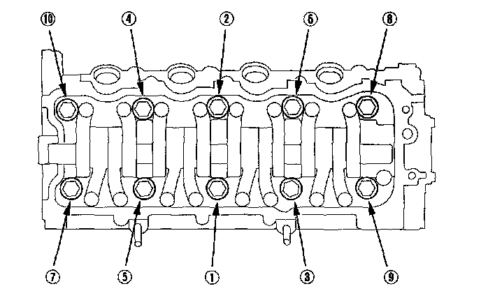 Tighten the bearing cap bolts in sequence 25 Nm (2.5 kgf-m, 18 lbf-ft)