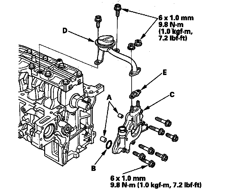 Tighten 9.8 Nm (1.0 kgf-m, 7.2 lbf-ft)