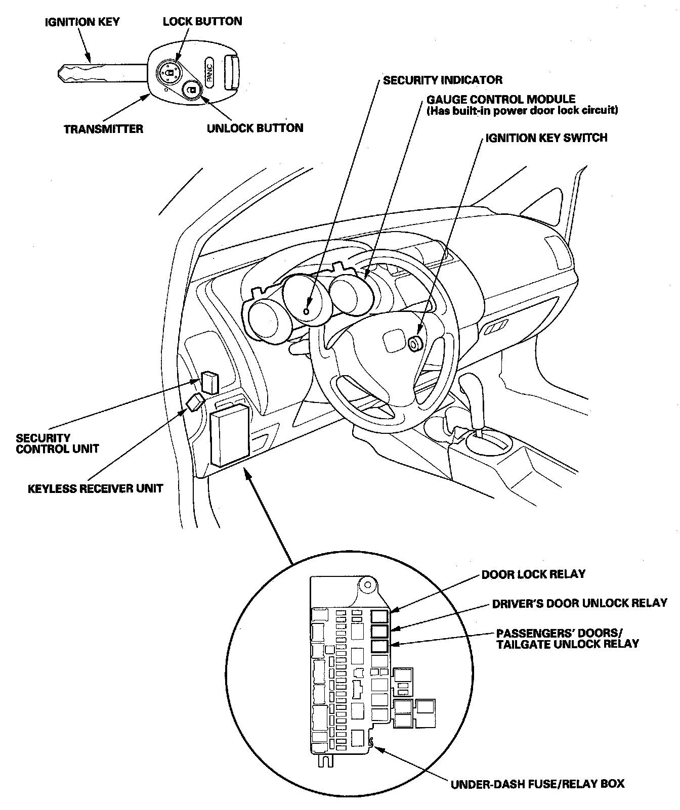 Keyless/Power Door Locks/Security System Component Location Index:
