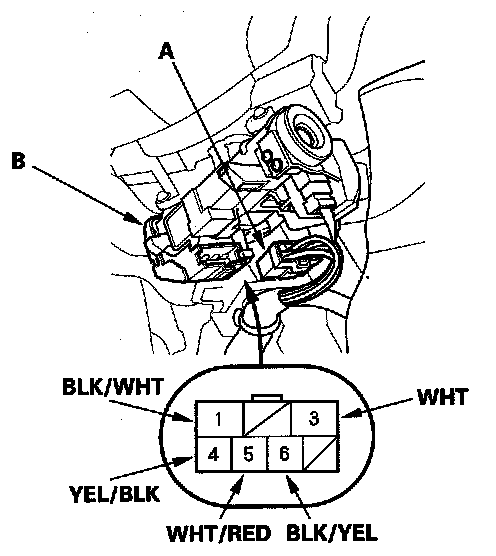 4. Disconnect the 7P connector (A) from the ignition switch (B).