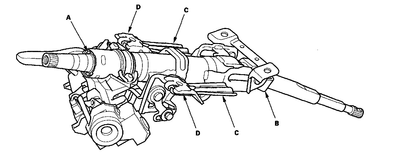 ^ Check the absorbing plates (C), and sliding capsules (D) for distortion or breakage. If there is distortion or breakage, replace the steering column as an assembly.