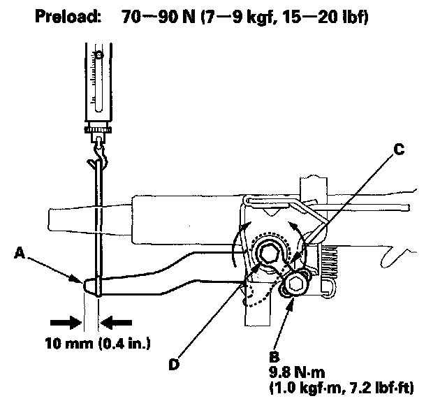 ^ Adjust the preload by turning the lock bolt (D) left or right.