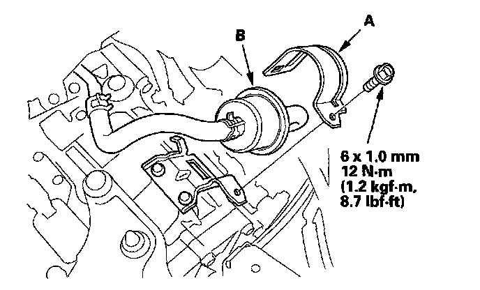 6. Remove the ATF filter holder (A), then move the ATF filter (B) aside, leaving it connected to the ATF hoses.