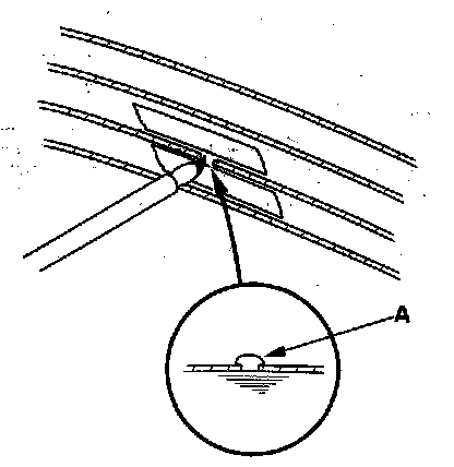 3. Using a small brush, apply a heavy coat of silver conductive paint (commercially available) (A) extending about 1/8 inches on both sides of the break. Allow 25 minutes to dry. Thoroughly mix the paint before use.
