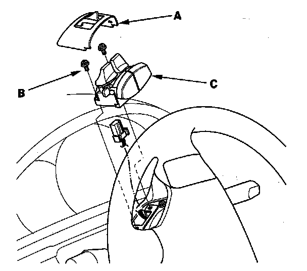 2. Remove the two screws (B) from the voice control switch or HFL/voice control switch (C).