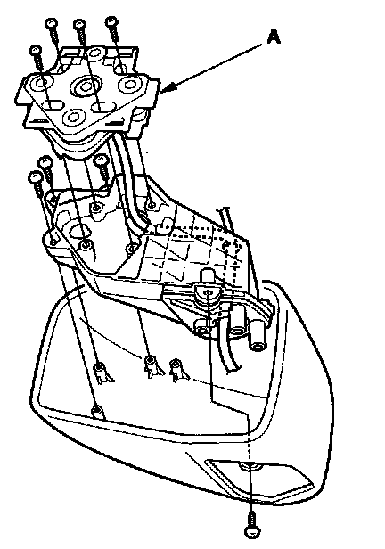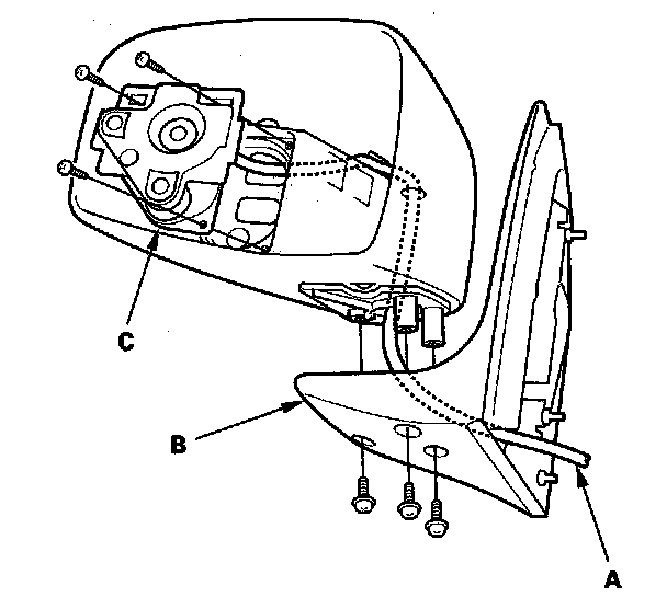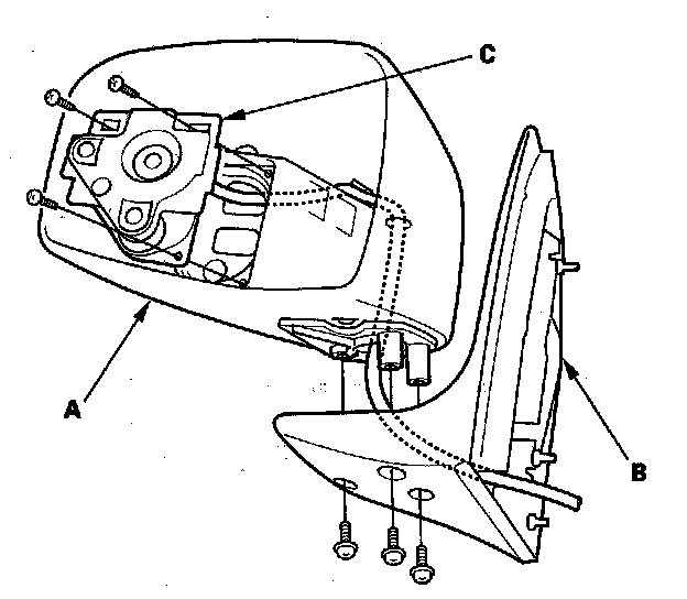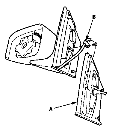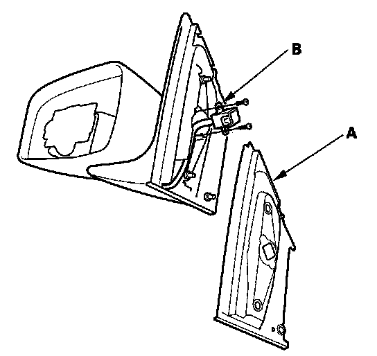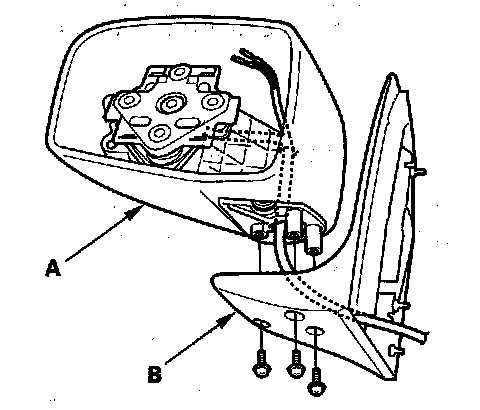 5. Remove the three screws, and separate the mirror housing (A) from the bracket (B).