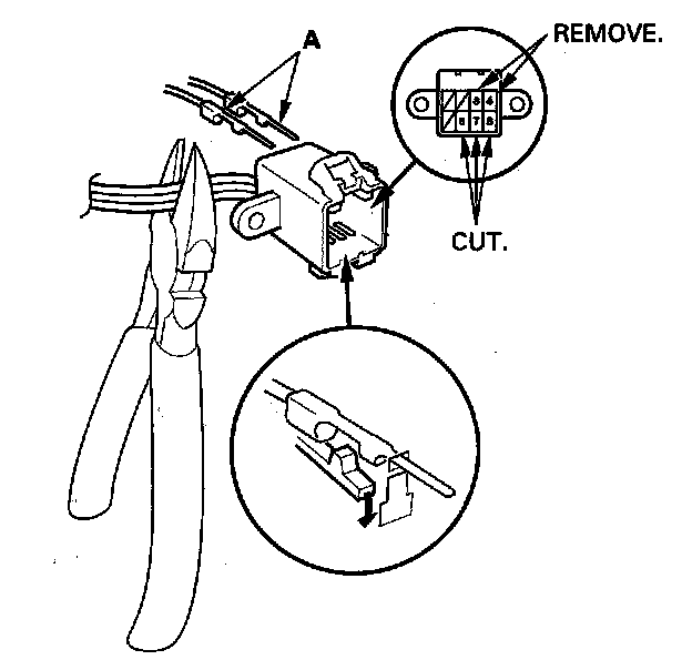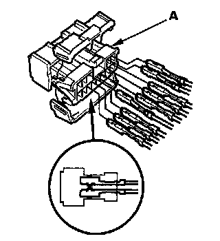 3. Disassemble the power mirror 13P connector (A), and remove the terminals from it.