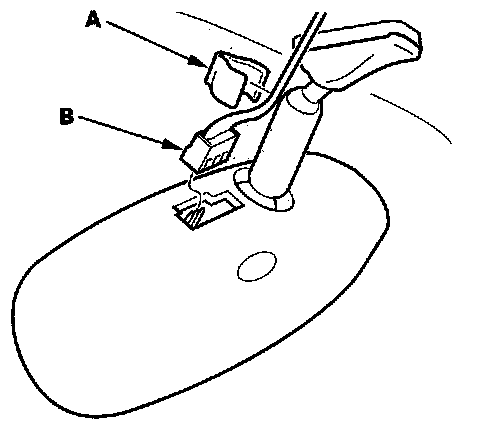 2. Remove the harness holder (A), then disconnect the connector (B).