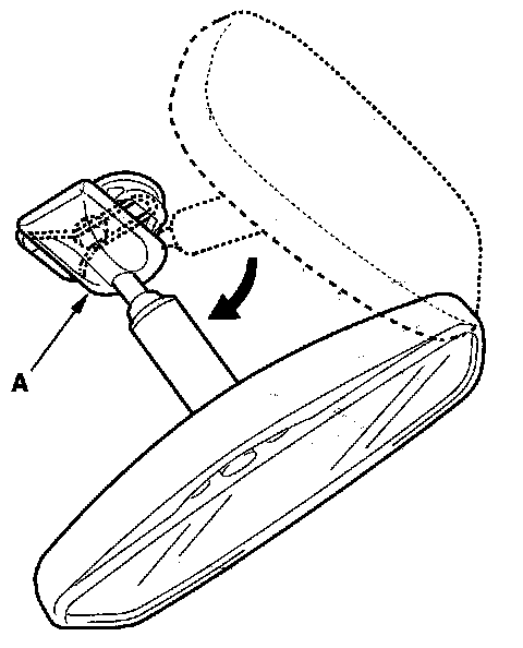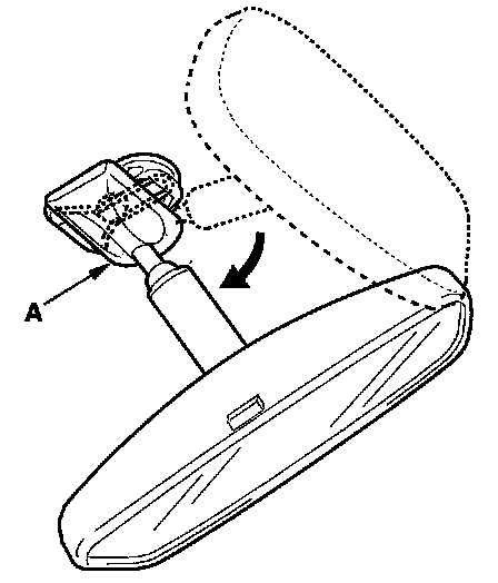1. Turn the rearview mirror base (A) 90°.