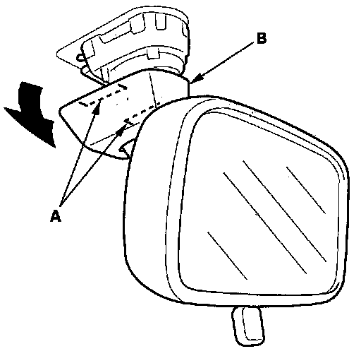 1. Release the hooks (A), then pull the mirror base cover (B) down.