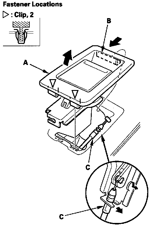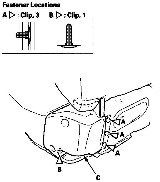 5. Release the seat cushion cover clips (A, B) around the recline outer cover (C).