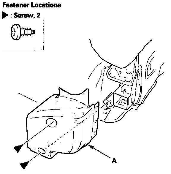 6. Remove the screws, then remove the outer recline cover (A). The left outer recline cover is shown; the right outer recline cover is similar.