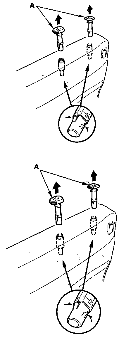10. Pinch the tabs on the ends of the head restraint guides (A), and remove the guides from the seat-back.