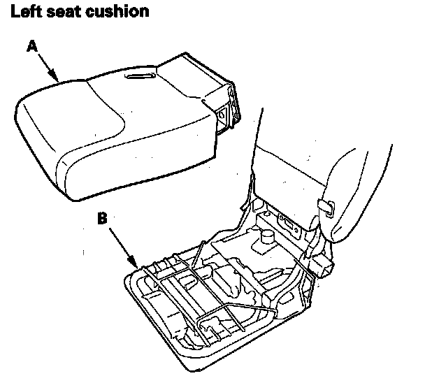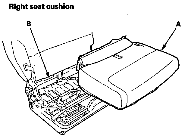 19. Remove the seat cushion cover/pad (A) from the cushion frame (B).