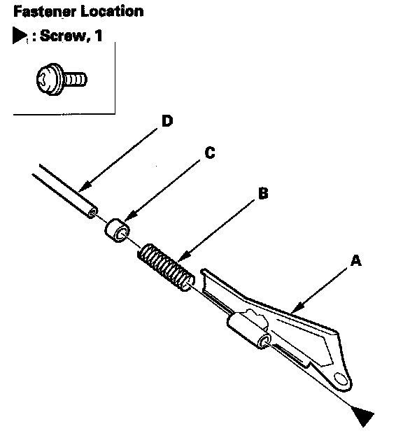 20. Remove the screw, then remove the plate (A), spring (B), and collar (C) from the end of the seat cushion rod (D).
