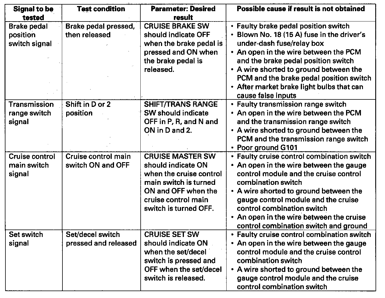 - Intermittent failures are often caused by loose circuit connections. While monitoring cruise control inputs, flex their circuits, and note if any of the test results change.