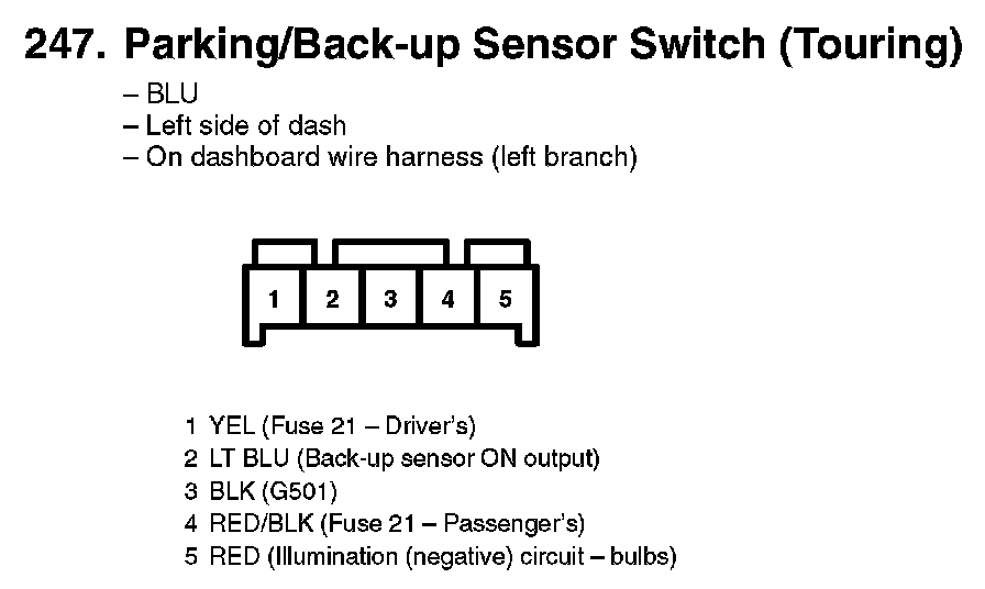 247. Parking/Back-up Sensor Switch (Touring):