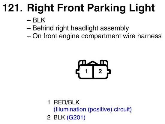 View 121 - Right Front Parking Light Connector View
