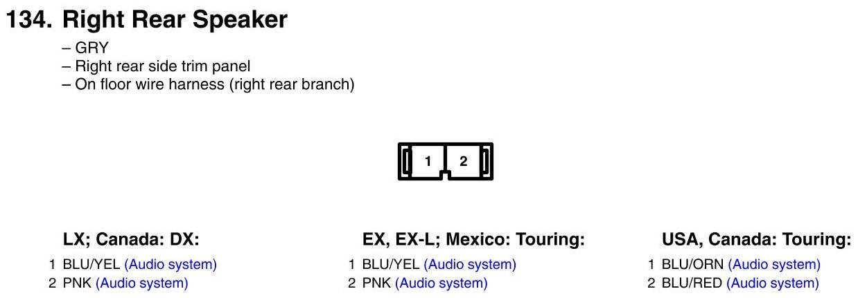 View 134 - Right Rear Speaker Connector View