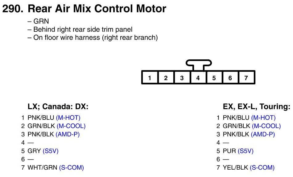 View 290 - Rear Air Mix Control Motor Connector View