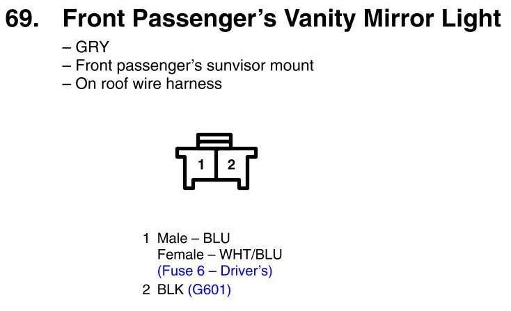 View 69 - Front Passenger's Vanity Mirror Light Connector View