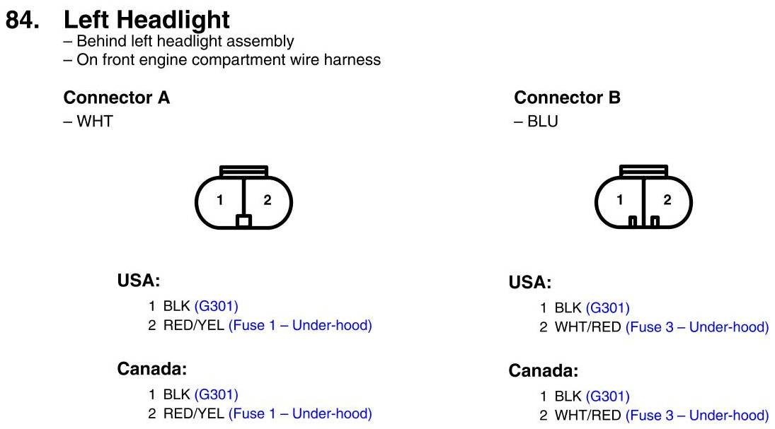 View 84 - Left Headlight Connector View