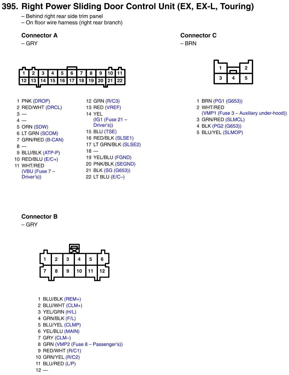 Right Power Sliding Door Control Unit Connector View (EX, EX-L, Touring)
