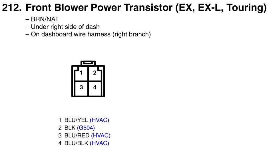 Front Blower Power Transistor Connector View (EX, EX-L, Touring)