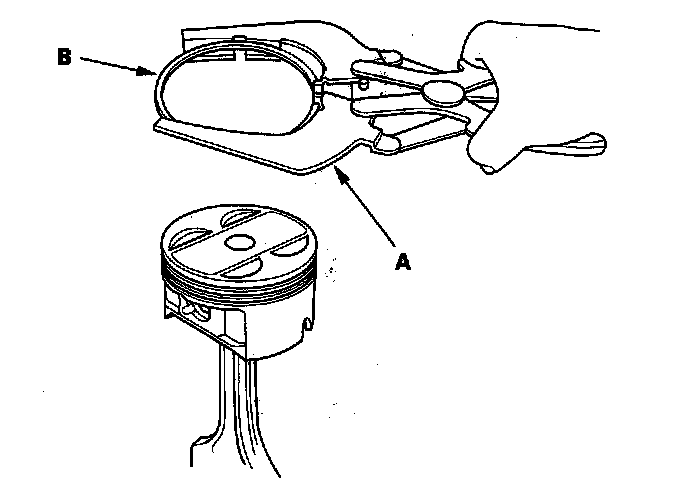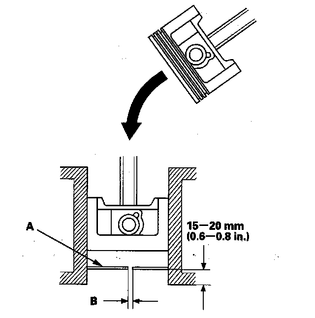 5. Measure the piston ring end-gap (B) with a feeler gauge: