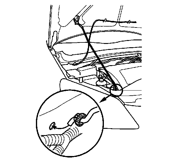 1. Secure the hood in the wide open position by using a support rod as shown.
