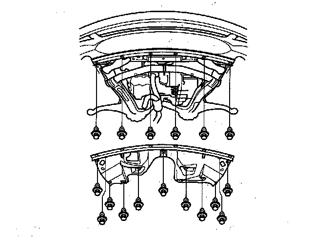 45. Remove the nuts securing the lower transmission front mount and the lower transmission rear mount.
