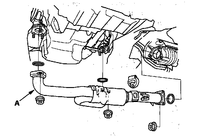 53. Remove the ATF cooler hoses (A), then plug the ATF cooler hoses and the lines.