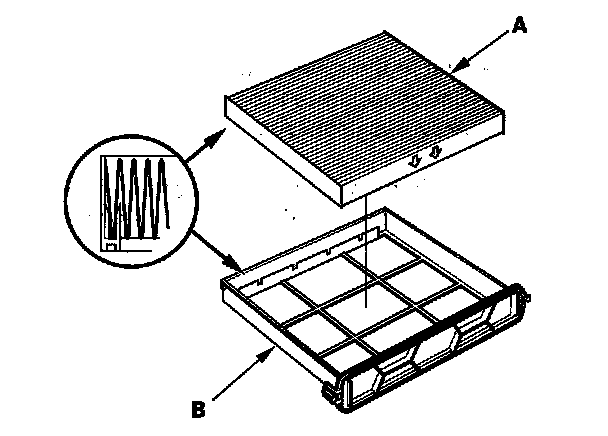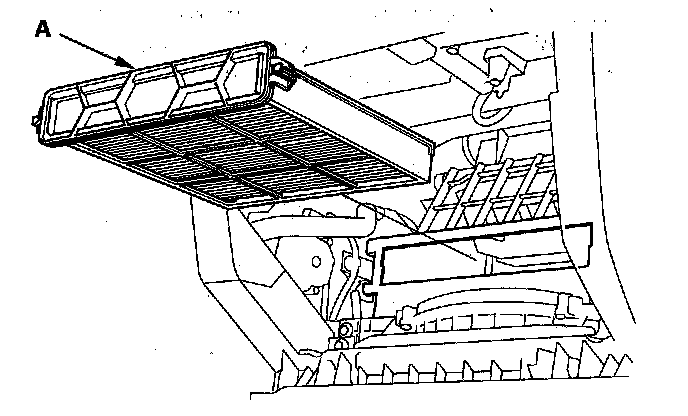 2. Remove the dust and pollen filter assembly (A) from the evaporator.