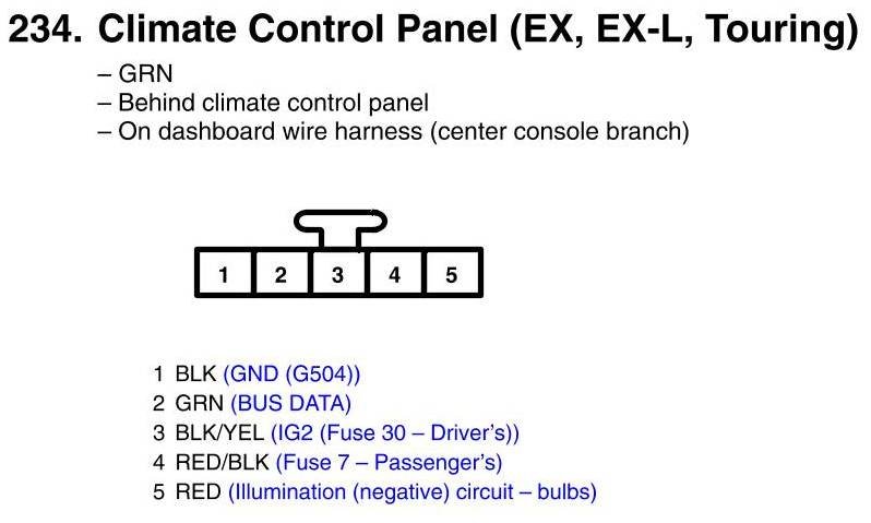 Climate Control Panel Connector View (EX, EX-L, Touring)