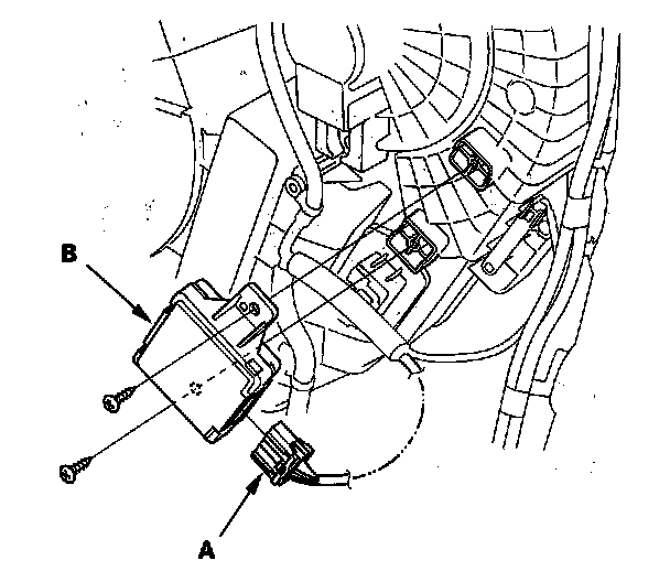 2. Disconnect the connector (A) from the rear climate control unit (B), then remove the self-tapping screws and the rear climate control unit.