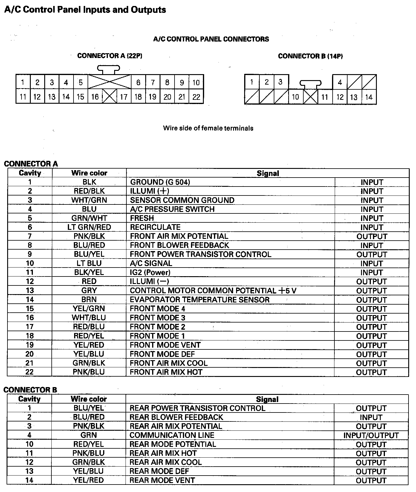 A/C Control Panel Inputs And Outputs