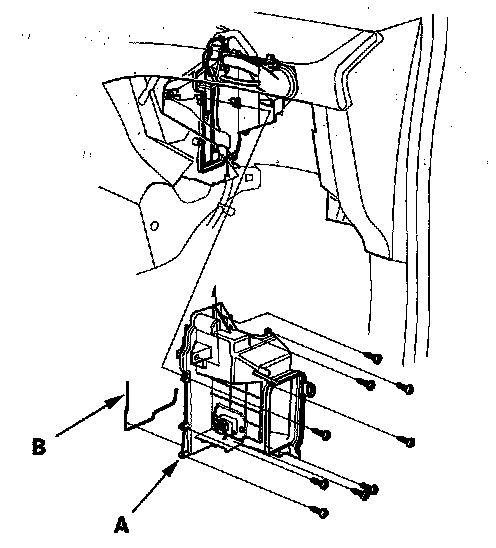 7. Carefully pull out the front evaporator core (A) and the plate (B).