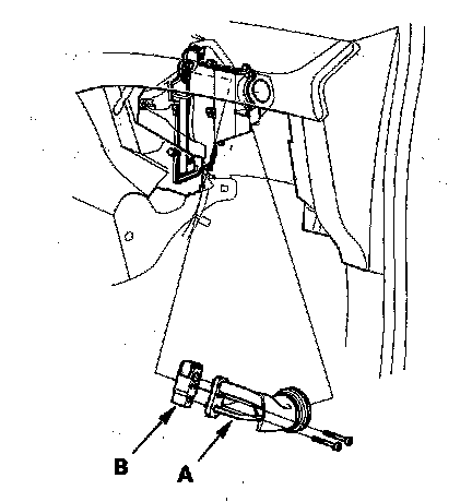 3. Remove the bolts and nut, then disconnect the suction line (A) and the receiver line (B) from the front evaporator core.