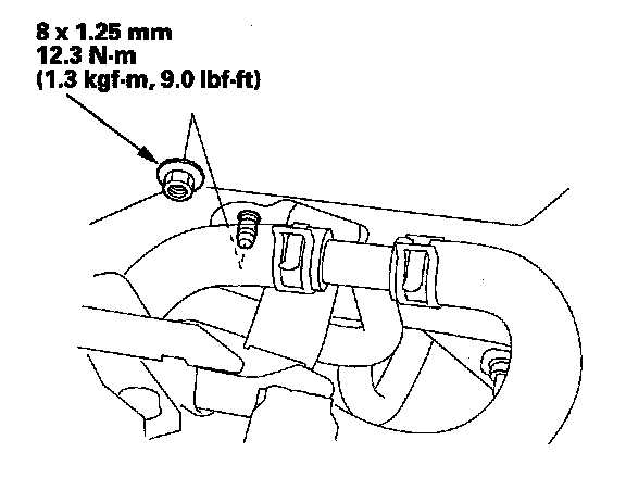 7. Remove the mounting nut from the heater unit. Take care not to damage or bend the fuel lines and the brake lines, etc.