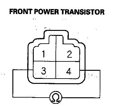 3. Measure the resistance between the No. 3 and No. 4 terminals of the front power transistor. It should be about 1.5 kohms.