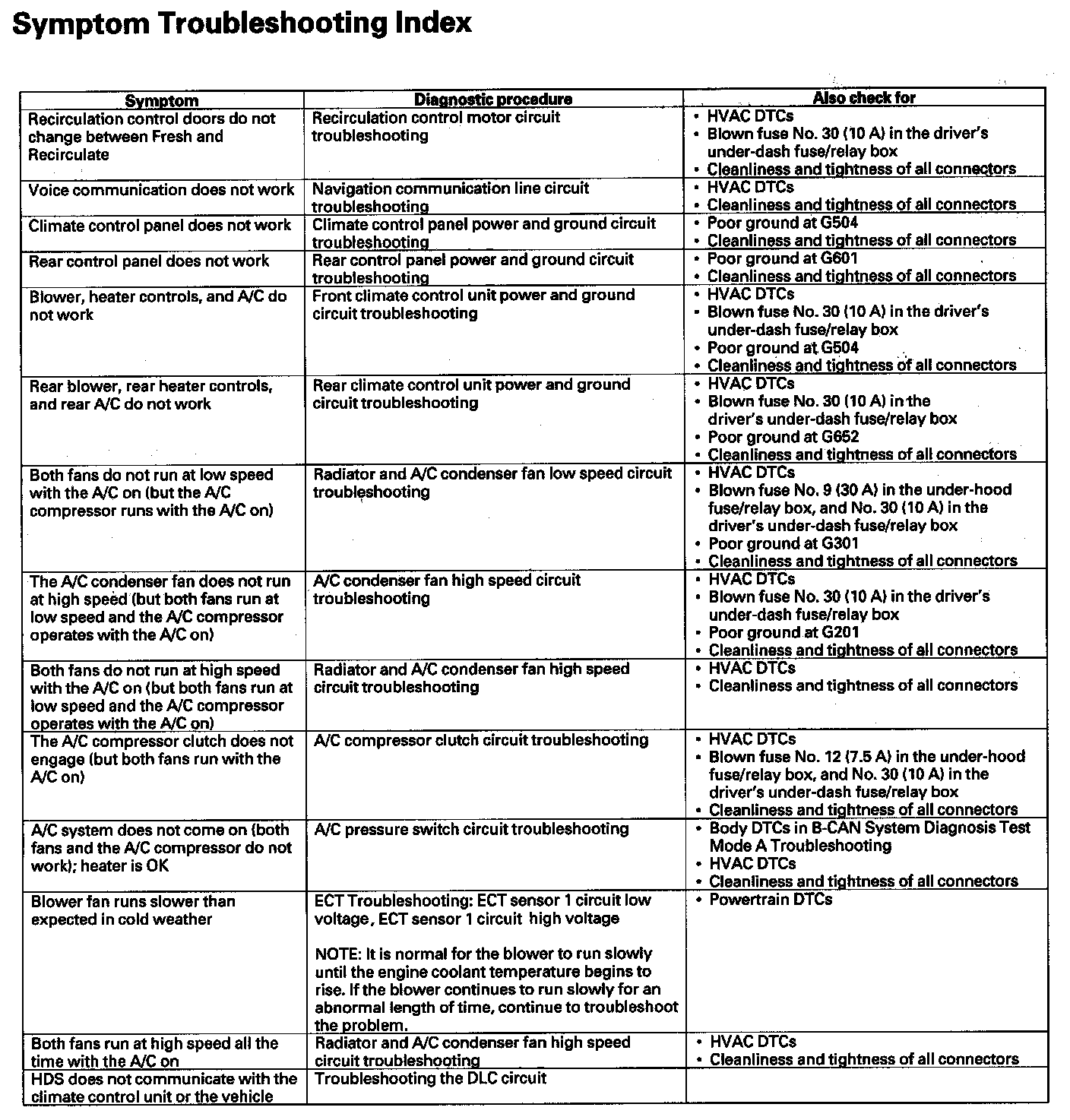 Symptom Troubleshooting Index: