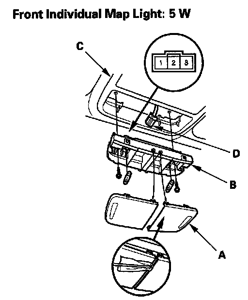 Front Individual Map Light Test/ReplacementEX, EX-L, and Touring models
